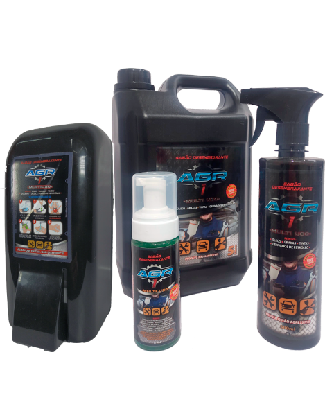 O AGR1 é um sabão desengraxante produzido para realizar a limpeza de graxas, óleos, tintas, diesel, gasolina, querosene e resinas em diversas superfícies. Não possui em sua composição produtos agressivos como soda cáustica, areia, pó de mármore e querosene.