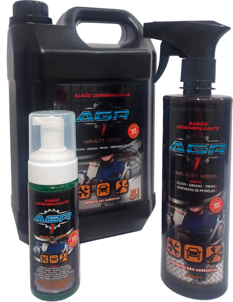 Como resultado desse trabalho chegamos ao nosso Sabão Desengraxante, o AGR1, que remove graxas, óleos, thinners, tintas, querosene, gasolina, diesel e outras substâncias oleosas sem agredir a superfície que está sendo limpa.